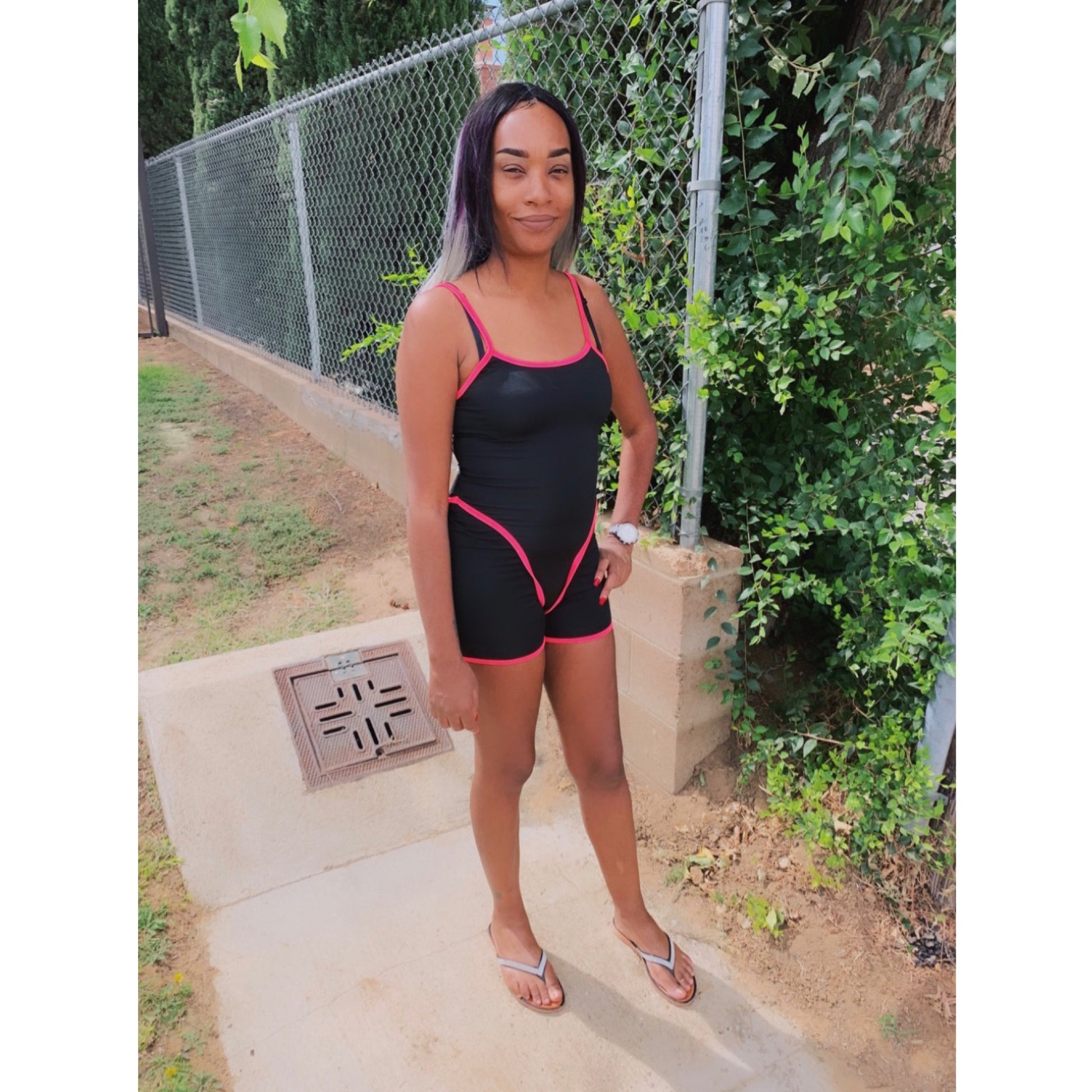 "Outta This World" Romper - Black & Neon Pink